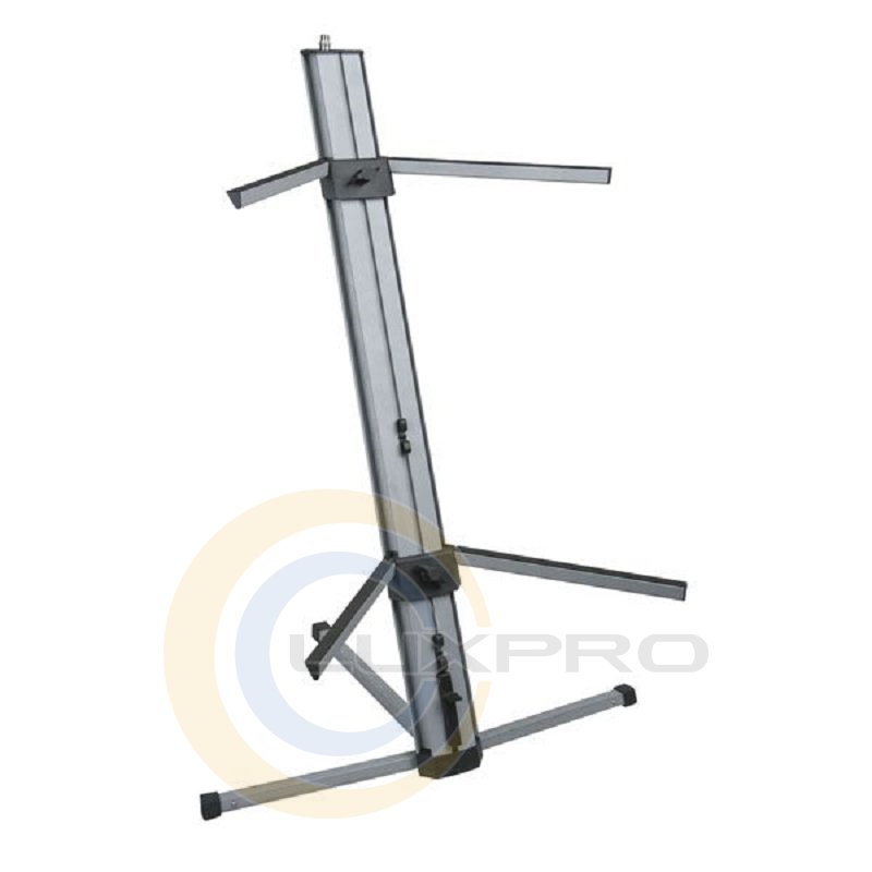 Professional keyboard stand — стойка для клавиатуры компактна в транспортировке, проста в установке и выглядит очень стильно по сравнению с обычными подставками. Он вмещает 2 клавиатуры регулируемой высоты. Ножки находятся внутри колонны, и трехстворчатые рычаги также могут складываться в колонну. Вверху колонки находится адаптер микрофона, который можно использовать для крепления гибкой стойки.