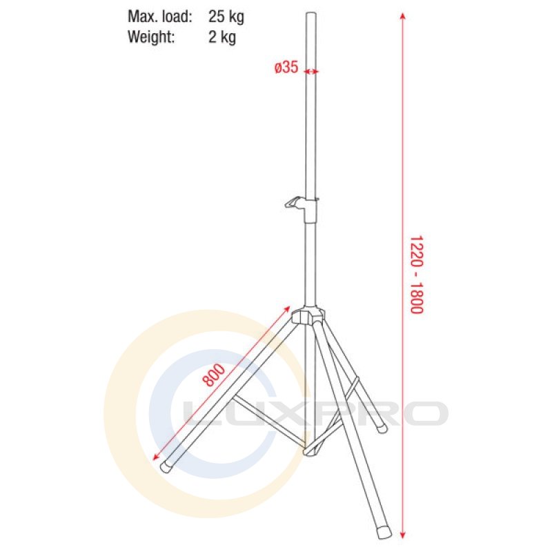 Стойка Speakerstand 35-38mm max load 25Kg для громкоговорителей 35-38 мм, максимальная нагрузка 25 кг.