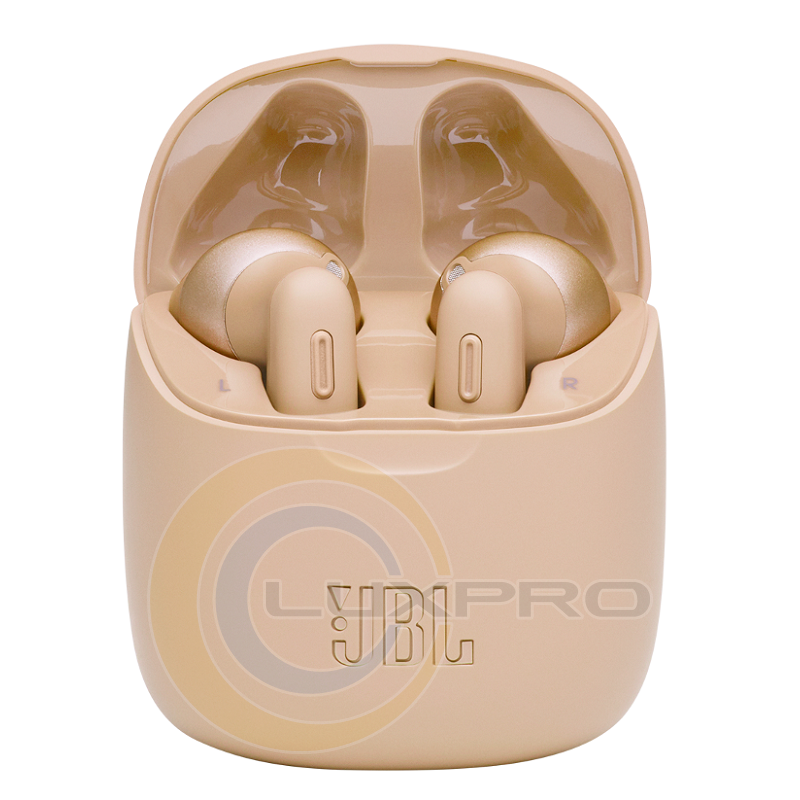 Наушники T225TWS GOLD. Запутанные в сумке, застрявшие в куртке или в волосах провода могут мешать вам. Испытайте полную свободу без проводов с наушниками True Wireless JBL TUNE 225TWS. Благодаря автономной работе до 25 часов вы можете слушать музыку днем ??и ночью. Продолжайте заниматься своим частным концертом столько, сколько сможете.