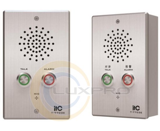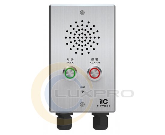 Цифровая панель T-7703E подходит для использования как внутри, так и снаружи, благодаря влагозащищенном корпуса. В устройстве используется высокопроизводительный промышленный процессор (ARM + DSP) со скоростью отклика менее 1 секунды. Одна кнопка для помощи / тревоги. Пользователь вызывает очередной микрофон с помощью этой кнопки. Встроенный высокочувствительный микрофон, позволяющий передавать информацию четко и без лишнего шума. Встроенный 3 Вт динамик имеет чистый и насыщенный звук.Характеристики: