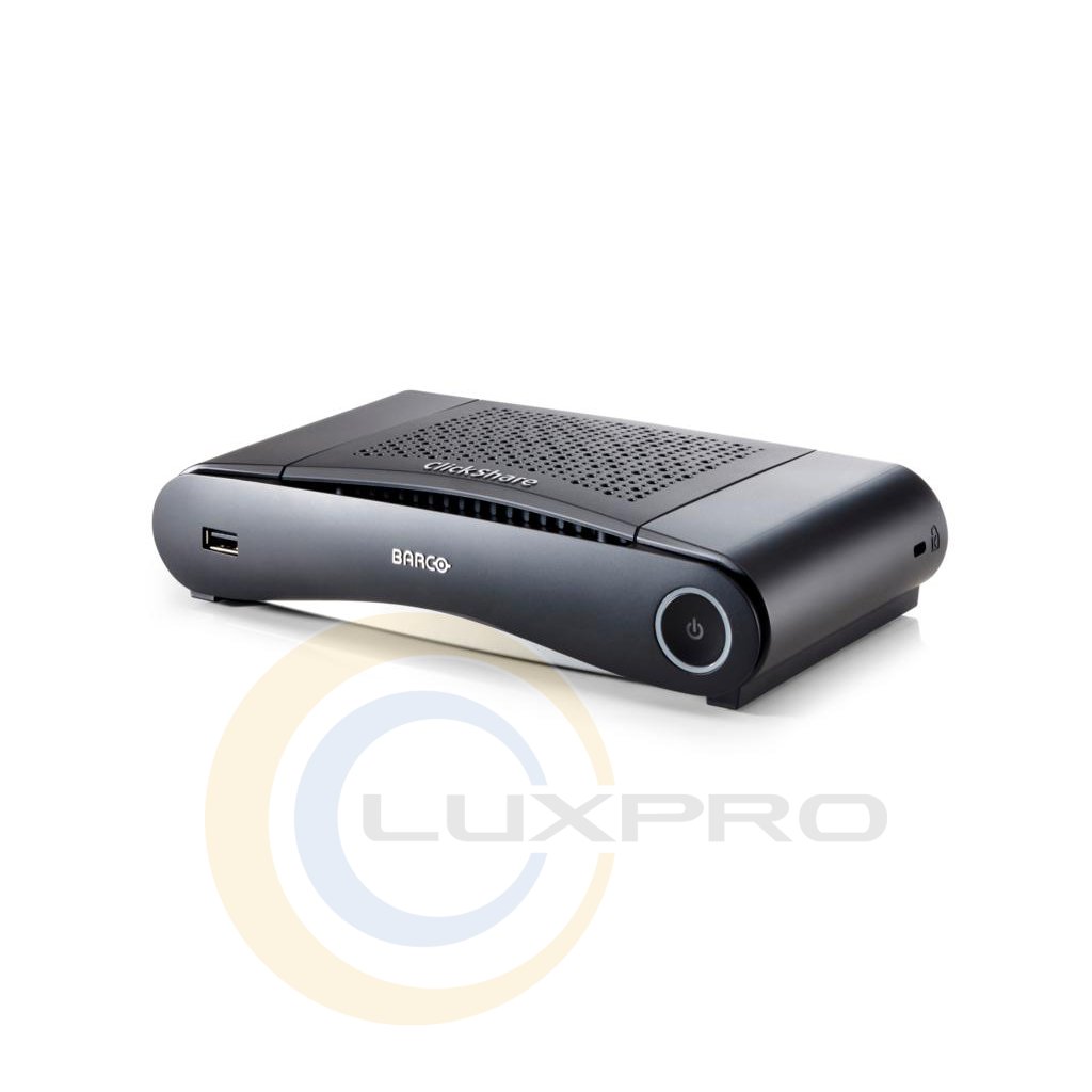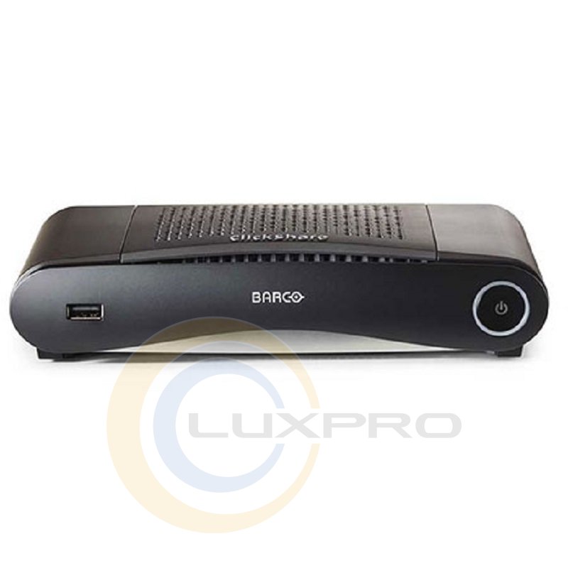 - комплект ClickShare CS-100 состоит из компактного базового блока и одной USB-кнопки, он позволяет выводить на экран одну презентацию от любого из 8 одновременно подключенных участников; возможно приобретение дополнительных кнопок или подключение смартфонов и планшетов с бесплатным мобильным приложением (для iOS и Android).