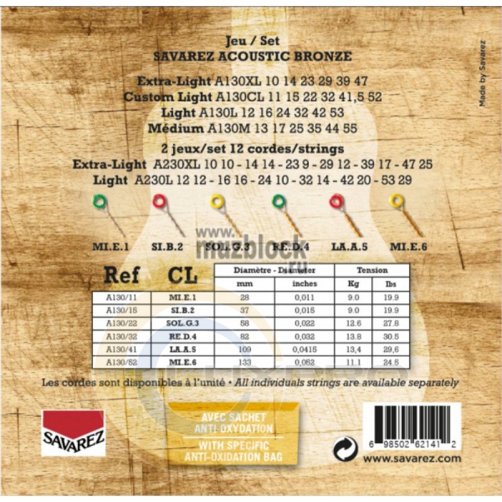 A130CL — это струны для акустических гитар, (11,15,22,32,415,52), бронза, легкие.