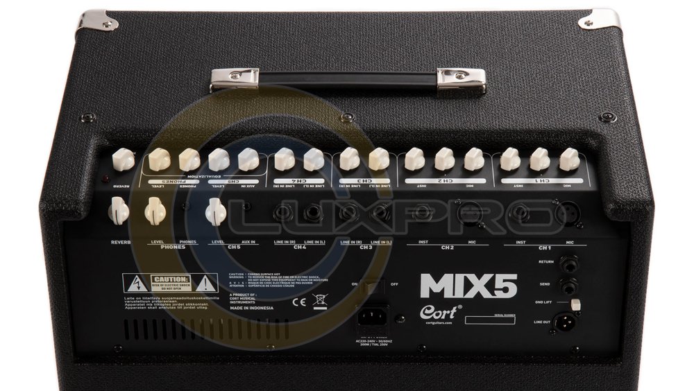 MIX5 - гитарный комбоусилитель, каждый канал оснащен индивидуальным регулятором GAIN, общей громкостью и 4-полосным эквалайзером, который контролирует общий выходной микс. Каналы 1–4 также имеют специальный регулятор EFFECT для независимой регулировки уровней реверберации, а главный регулятор REVERB регулирует общий уровень эффекта. Специально для каналов 1 и 2 предусмотрены специальные регуляторы ROOM, которые предназначены для выделения высоких или низких частот в зависимости от направления вращения регулятора для сбалансированного управления эквалайзером.