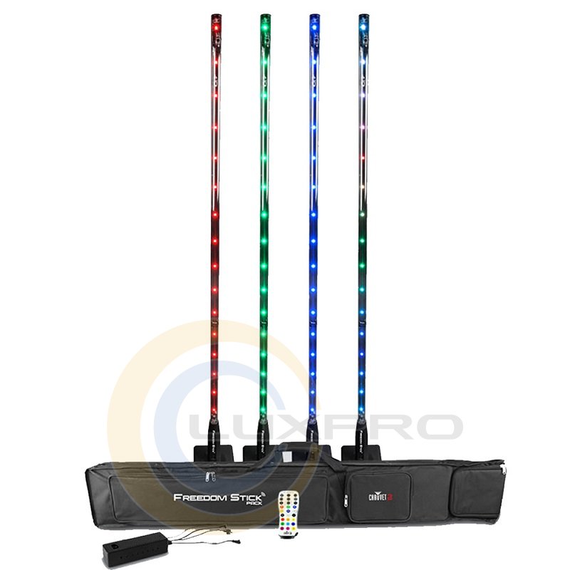 Редактируемые автоматические программы позволяют добавить яркости и эффектности вашему шоу за считанные секунды, а поддержка DMX, беспроводного управления по протоколу D-Fi, режимы Master/Slave и возможность настройки при помощи комплектного IRC-6 пульта обеспечивают удобство и простоту использования. Для удобства хранения и транспортировки Freedom Stick Pack комплектуется прочным чехлом, вмещающим не только сами трубки, но и все комплектные аксессуары.