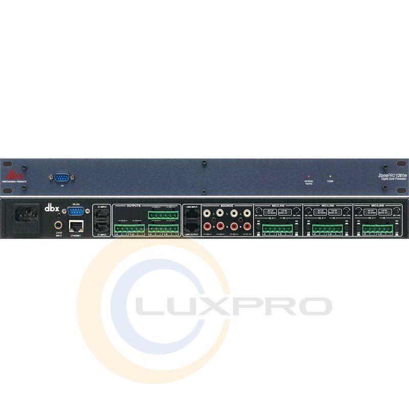 Аудиоисточники подключаются к разъемам на тыльной стороне. Для подключения до 2-х цифровых аудиоканалов имеется вход S/PDIF, размещенный также сзади. Микрофонные входы поддерживают индивидуальное изменение усиления и фантомное питание напряжением 15 В DC. Функция АРУ для поддержания уровня сигнала на постоянном уровне. Индивидуальные мгновенные лимитеры на каждый выходной канал для оптимальной защиты акустики. LINK IN/LINK OUT служат для расширения зон первых 6 аудиоканалов при линковании с другими процессорами серии ZonePRO. Легко настраиваемый параметрический эквалайзер (EQ). Функция коррекции времени задержки входных/выходных сигналов в автоматическом режиме.