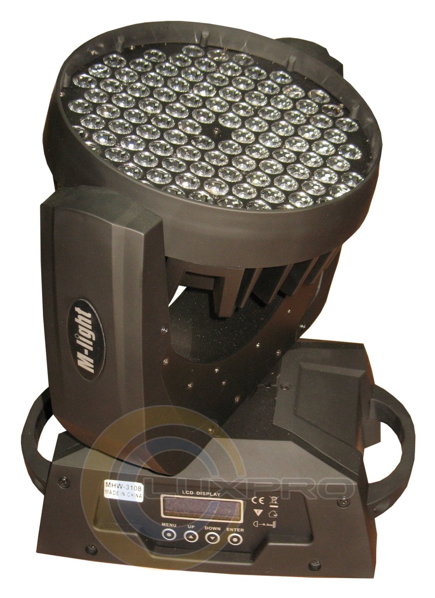 Мощная и быстрая заливочная светодиодная светодиодная голова M-LIGHT MHW-3108, оснащенная 108 шт светодиодов каждый мощностью 3 W, RGBW. Прибор обладает всеми необходимыми функциями для применения в: клубах, ресторанах, на сценах. Голова имеет 12 каналов управления по протоколу DMX 512. Этот световой прибор удовлетворит все Ваши потребности в красочном и стильном освещении любого мероприятия.Характеристики: