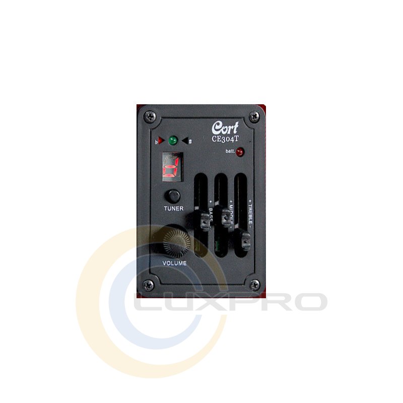 Эксклюзивный струнодержатель Cort с вогнутой поверхностью заметно улучшает сустейн, благодаря оптимальному углу изгиба струн, в то же время уменьшая их натяжение для комфорта при игре. AD880CE оборудована встроенным керамическим пьезозвукоснимателем и предусилителем Cort CE304T. Трехполосный эквалайзер позволяет точно отрегулировать звучание инструмента, а хроматический тюнер с LED дисплеем дает возможность быстро и удобно настроить гитару даже на самой темной сцене.