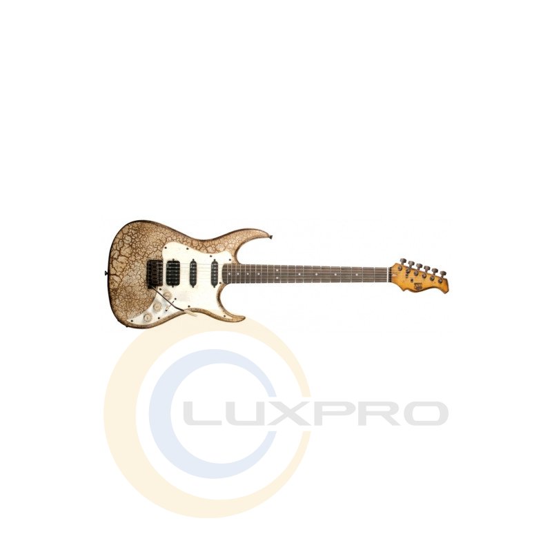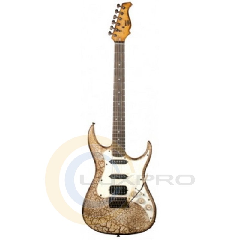AXL AS820CKBW - электрогитара с корпусом из цельной ольхи, грифом из сахарного клена, с палисандровой накладкой, с бриджем / струнодержателем Anodized Tremolo, SSH звукоснимателями (EMG-designed), регулятором громкости, 2 регуляторами тембра и 5-позиционным переключателем датчиков, антично коричнево-белого цвета.