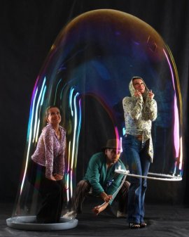Так зване шоу мильних бульбашок або ж «людина в міхурі» - досить поширене явище серед організацій розваг. Суть полягає в створенні нереально великих за розміром мильних бульбашок. Зазвичай це відбувається з використанням спеціального реквізиту, який ви також зможете купити в нашому магазині.