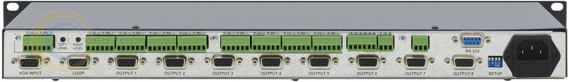 Усилитель-распределитель 1:8 VGA (и звукового балансного стереосигнала с регулировкой уровня и АЧХ, функцией отключения выходов, 400 МГц) VP-108