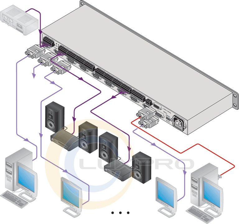 Великі розподільні системи. Вони будуються шляхом простого каскадирования декількох приладів;Професійні системи, в яких потрібно розподіл сигналів VGA / UXGA на кілька моніторів і / або проекторів з високою якістю.