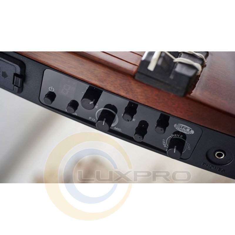Завдяки неймовірно реалістичного відтворення звучання акустичних гітар аж до найдрібніших деталей сустейна і динаміки, гітаристи можуть насолоджуватися справжнім резонансом корпусу і об'ємним насиченим тембром - як якби грали на акустичній гітарі топ класу. Ви навіть можете змішувати звучання SRT Powered з сигналом п'езодатчіка, що відкриває двері в світ нових можливостей для створення свого унікального тембру.