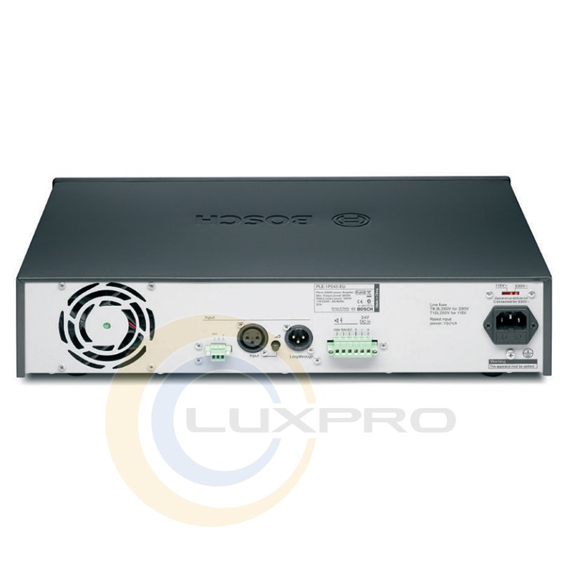 PLE-1P240-EU підсилювач потужності 240 Вт для фонового озвучування (BGM) громадських приміщень - для передачі музики і повідомлень.