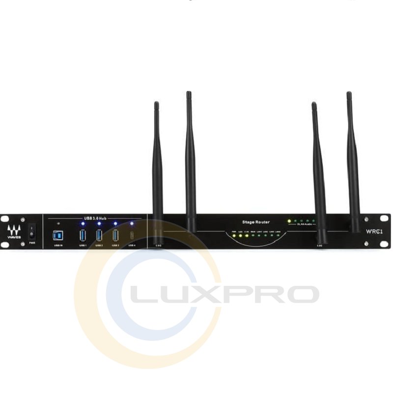 WAVES WRC-1 - професійний бездротової двохдіапазонний гігабітний мережевий маршрутизатор. Металевий корпус для монтажу в 19 '' стійку (1U) WiFi-роутер, призначений для роботи з професійними аудіододатками і управління сценічним обладнанням. Пристрій адаптовано для монтажу в стійку, має 5 гігабітних портів, двохдіапазонний WiFi, а також оснащено плеєром DLNA зі збалансованими входами XLR.
