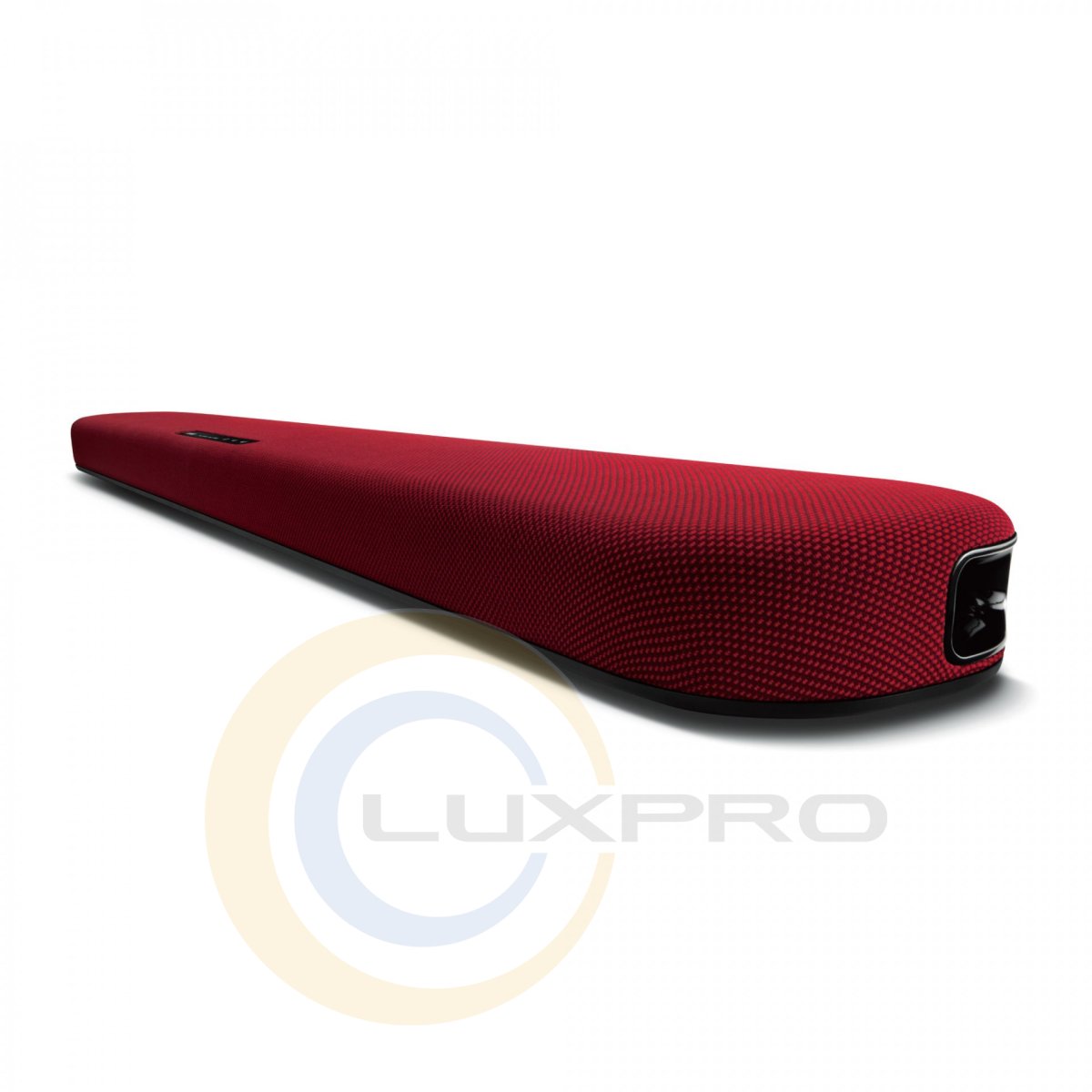 SR-B20A Red - саундбар оснащений має конфігурацію 2.1 і завдяки корпусу великий ширини здатна сформувати в кімнаті широку звукову картину. У колонці встановлені два НЧ-динаміка діаметром 55 мм і два 25-мм твітера - за однією парі в кожному каналі. Випромінювачі виготовлені в такий спосіб, щоб без спотворень відтворювати звук на високій гучності, для формування переконливого акустичного тиску в кімнаті прослуховування. Крім того, в корпусі Yamaha SR-B20A змонтовані два 75-мм басовік. Всі динаміки в корпусі колонки встановлені таким чином щоб висота його корпуса залишилася мінімальної, а поширення звуку в кімнаті вийшло рівномірним.