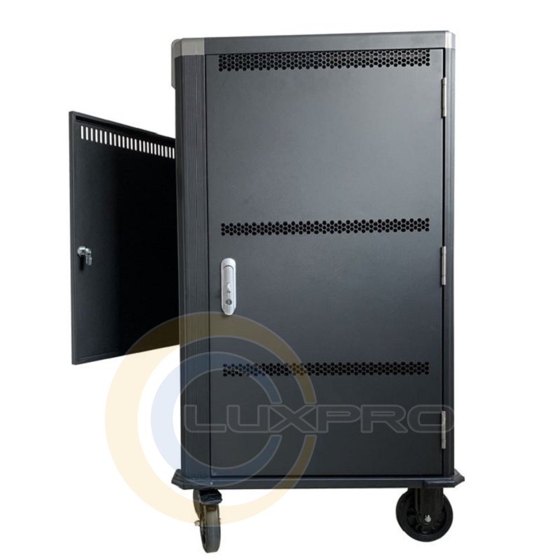 Шафа для зберігання і зарядки ноутбуківTN-CHGC-30B-E. Модуль для зберігання і заряджання портативних комп'ютерів учня (ноутбуків) мобільний на коліщатках. Конструктивні складові модуля: фасади, кришки верхня і нижня, бічні і полки виготовлені з металу товщиною 0,8 мм., Полімерне вандалостійке покриття. Складова модуля: відділення для зберігання кожного ноутбука - 30 шт. Розмір пристроїв: до 15,6 дюймів.