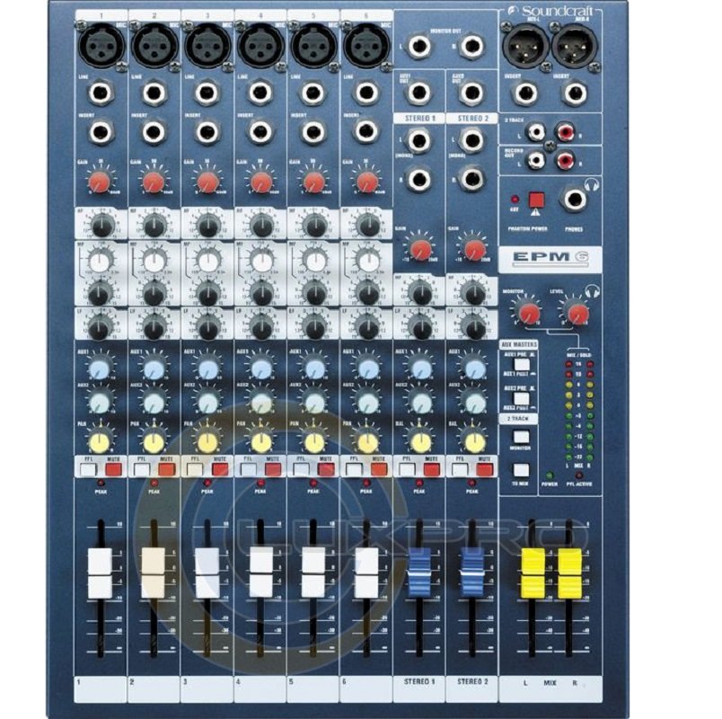 EPM12 має 12 моно входів і 2 стерео каналу. Виразність звучання Soundcraft EPM12 надзвичайно сильно відчувається при живому виконанні. Мікшер оснащений легкою у використанні і зрозумілою впорядкованої контрольної поверхнею. Широко відомий GB30 мікрофонний передпідсилювач, який використовується на більш форматних пультах LX7 II і GB Series, забезпечує високі перевантажувальні можливості і точність контролю мікрофонних сигналів.