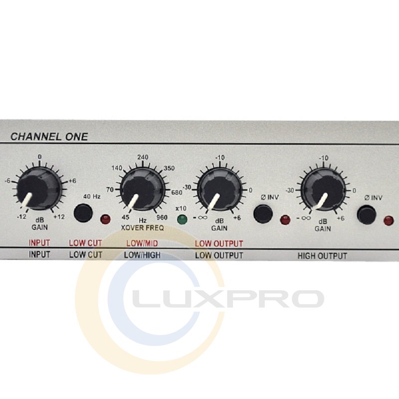Перш за все, це селектор режиму -« 2 смуги стерео / 3 смуги моно »в моделі 223 і« 3 смуги стерео / 4 смуги моно »в моделі 224 (візуальний контроль забезпечується двома зеленими світлодіодами на лицьових панелях). в обох кроссоверах застосовуються фільтри Linkwitz-Riley з добротністю 24 дБ / октава - це професійний стандарт. На кожному каналі є регулятор чутливості ± 12 дБ і обрізний фільтр 40 Гц високого порядку для видалення НЧ перешкод. НЧ і ВЧ виходи кожного каналу обладнані перемикачами фази відключення каналу і регуляторами вихідного рівня (від - °° до +6 дБ ).