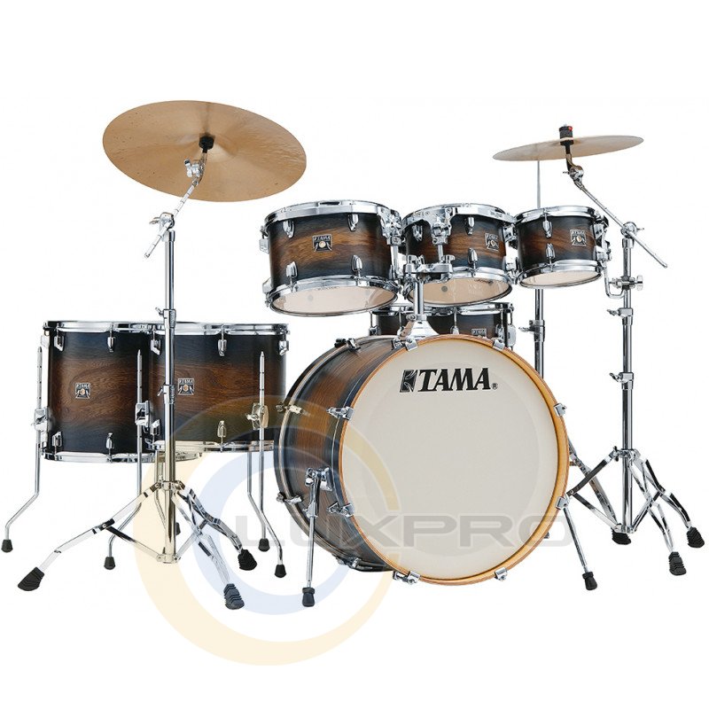 TAMA CL72RS-EMME - ударна установка з 7 барабанів, лімітована, Superstar Classic Exotic, конфігурація бочка 22 "х16", томи 8 "х6", 10 "х7", 12 "х8", флор-томи 14 "x12" і 16 "x14", малий 14 "х6 .5 ", в комплекті подвійний тому-холдер MTH600 і утримувач MC69, матеріал - клен, фурнітура хром, колір коричневий.Характеристики:
