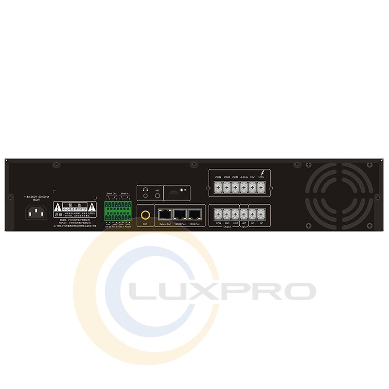 - вбудований аналоговий підсилювач рівня Hi-Fi, 60/120/240, вихід 4-16 Ом і вихід для підключення трансформаторних гучномовців 70-100 В;