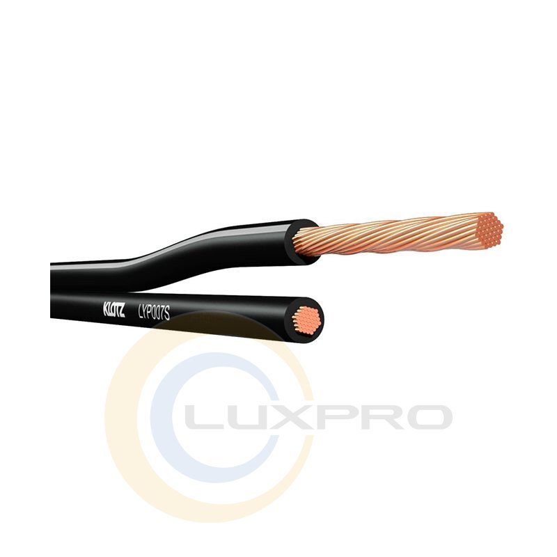 Акустичний кабель LYP007S з паралельним розташуванням жив для інсталяцій. Зручний в при підключенні до різних пристроїв. Дуже швидко може бути прикріплений до роз'ємів SpeakON або кріпиться на гвинтові клеми, а також до підсилювачів потужності. Саме цей паралельний кабель з ПВХ-оболонкою часто використовується для підключення домашніх кінотеатрів і преміум акустичних систем.