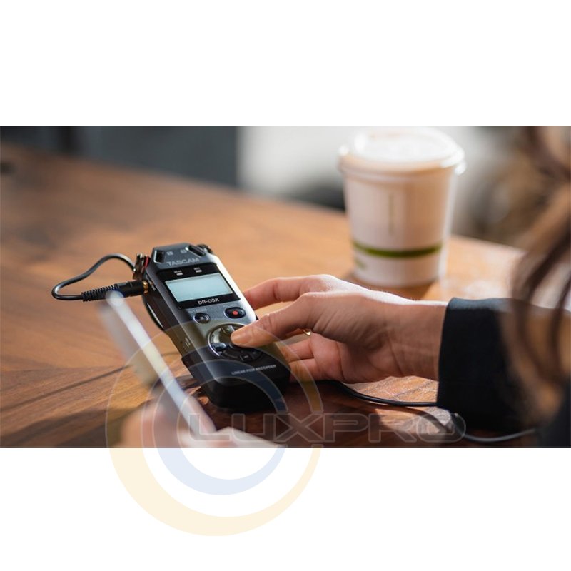 Цифровий рекордер Tascam DR-05X пропонує портативне високоякісне стереозаписування у форматі MP3 або WAV — включно з 96-кГц/24-бітовим аудіо високої роздільної здатності. Інформація може записуватися і зберігатися на карті пам'яті microSD, microSDHC або microSDXC (до 128 ГБ).