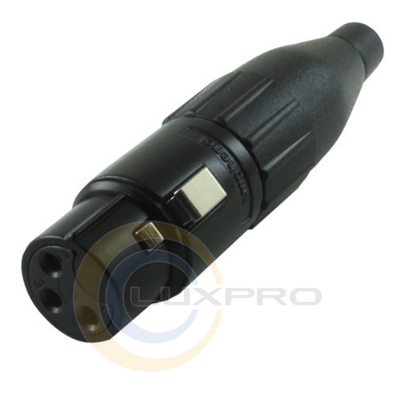 Amphenol AC3FB-AU - 3-контактний кабельний XLR коннектор «мама» з корпусом з цинку чорного кольору, пластиковоюї втулкою і позолоченими контактами, Мах Ø кабелю-6 мм, легка пайка, міцна фіксація роз'єму.
