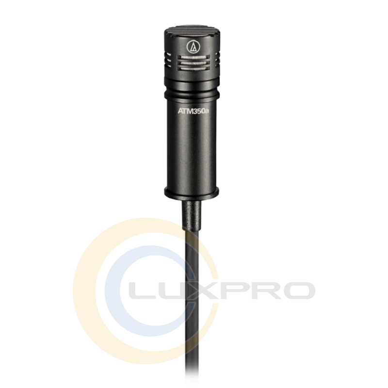 Audio-Technica ATM350D - мініатюрний універсальний інструментальний мікрофон для ударних інструментів. Він відмінно підходить як для концертних PA-систем, так і для живого запису інструменту. У нього конденсаторний елемент і кардиоидная діаграма спрямованості. Мікрофон дає чіткий, ясний і добре збалансований відповідь навіть при високих рівнях звукового тиску. Кардіоїдна діаграма спрямованості забезпечує гарне посилення перед виникненням зворотного зв'язку, а її рівномірний шаблон - відмінний захоплення звуку у вузькій області. Також вона ізолює основне джерело звуку при одночасному зведенні до мінімуму фонового шуму.