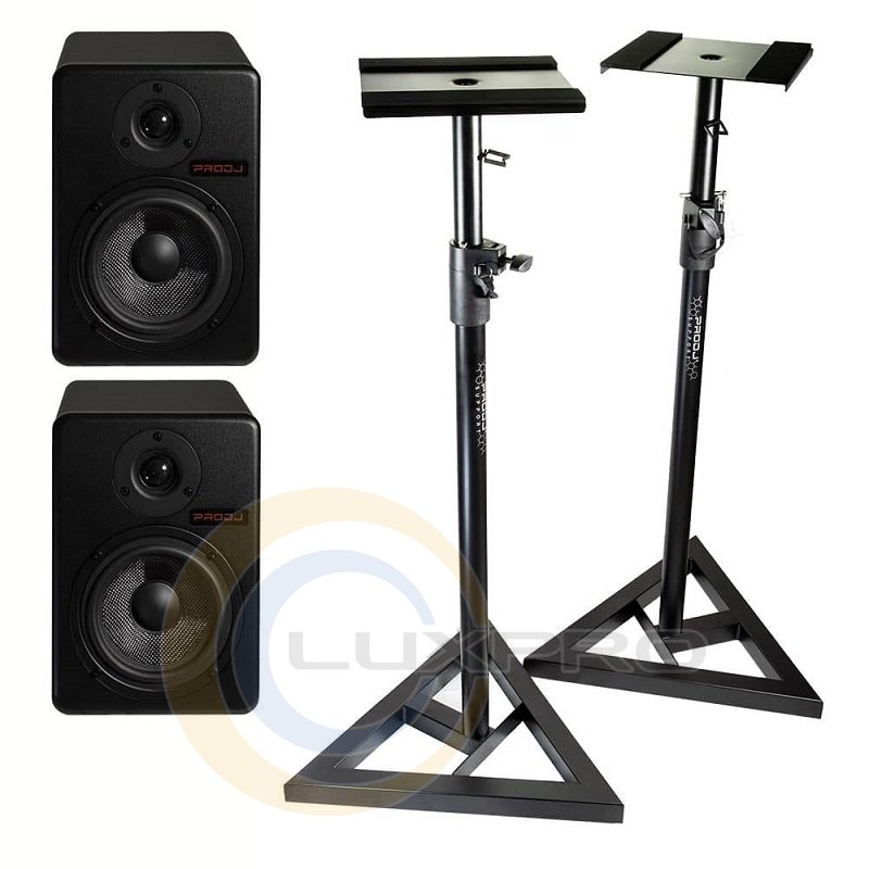 У нього входять 2 монітори PRODJ AUDIO M5 і 2 стійки для студійних моніторів PRODJ SUPPORT PRO-20.