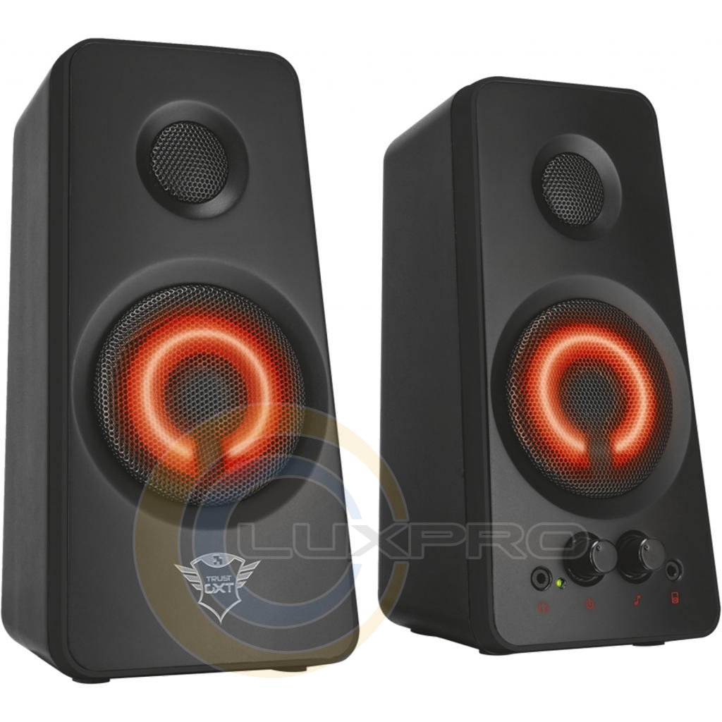 Акустична система Trust GXT 608 Illuminated 2.0 Speaker Set (21202) - це комплект колонок 2.0 потужністю 36 Вт для ПК з пульсуючим світлодіодним підсвічуванням.