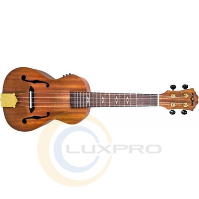 FZONE FZU30MEQ concert - укулеле, красивий і багатофункціональний музичний інструмент для концертних виступів. Корпус цієї компактної гавайської гітари виготовлений з ретельно відібраного ясеня (ламінований). Для виготовлення грифа використовувалося африканське червоне дерево (окуме), накладки грифа і містка - сонокелінг. На верхній деці присутні спеціальні вирізи у формі літери "f". Серед інших особливостей FZU30MEQ concert варто виділити хромований кілковий механізм типу Kluson, призначений для настройки інструменту, а також інкрустацію накладки, виконану з абалоне.