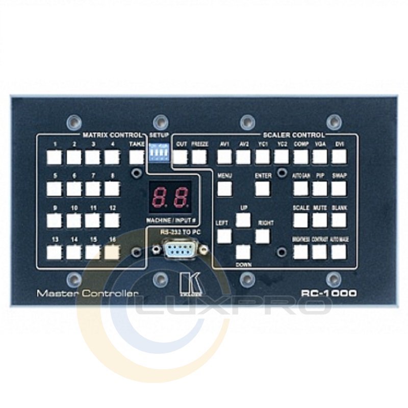 Також для дистанційного керування пристроєм до його послідовному порту може бути підключений PC або інша система управління. У секції управління комутаторами в RC -1000 є кнопка зі світлодіодним індикацією і 7-сегментний дисплей, що дозволяє легко здійснити настройку конфігурації кожного комутатора. До RC-1000 можна підключити до двох матричних комутаторів через їх послідовні порти RS-232. У секції управління масштабатором більшість операцій можна виконати простим натисканням одного перемикача. Пристрій може бути встановлено на робочому столі або вбудовано в панель управління, завдяки своїй вузькій конструкції. Пристрій живиться від джерела постійного струму 12 В, завдяки чому воно ідеально підходить навіть для позастудійної роботи.