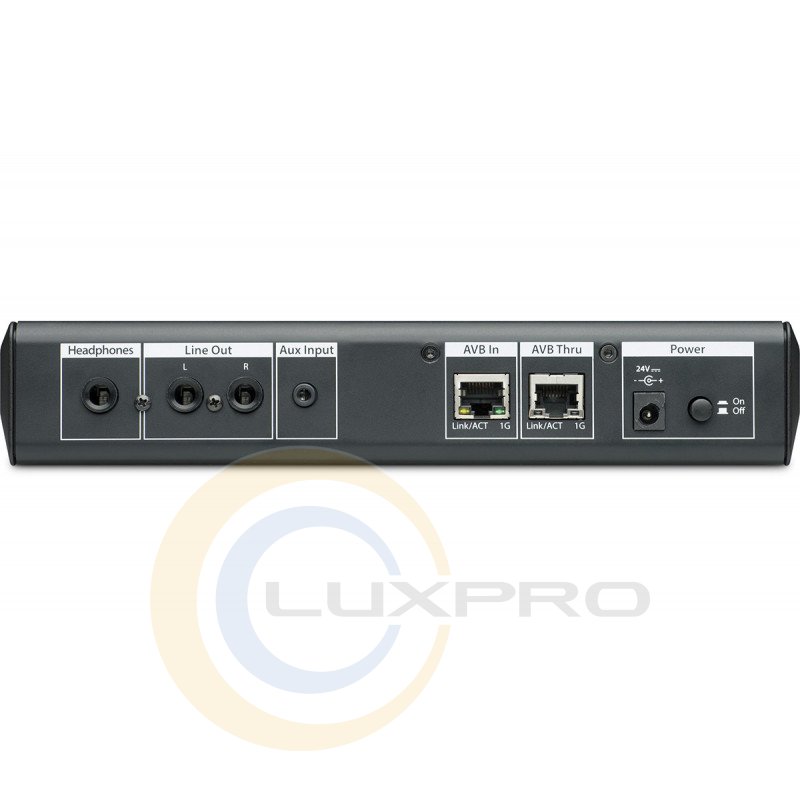 - з'єднується з мікшером через кабель Ethernet CAT5e або CAT6;