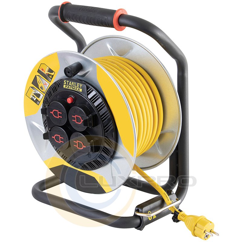 Подовжувач на котушці Stanley Fatmax 3x1.5мм2, IP44, 3200Вт, 4 розетки з кришками, алюміній