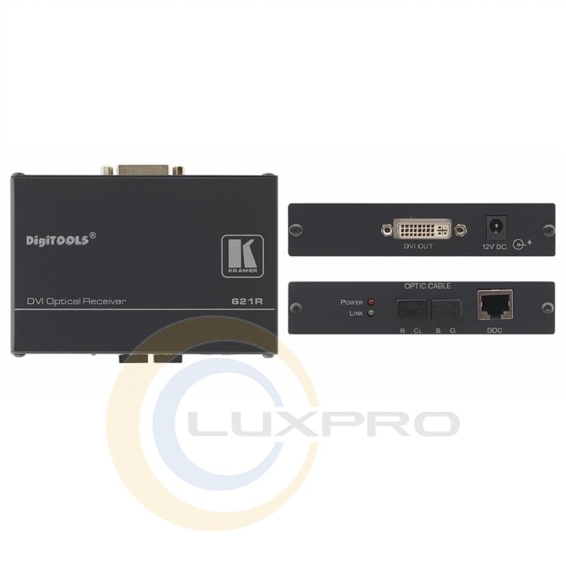621R - приймач, відеосигнал з роздільною здатністю до 1600x1200 при частоті кадрів 60 Гц передається по чотирьох оптоволоконним кабелях з роз'ємами LC (червоний, зелений, синій канали та канал синхронізації). Передача даних DDC / HDCP, а також харчування для одного з приладів від іншого здійснюється по кабелю на неекранованої кручений парі з роз'ємами RJ-45.