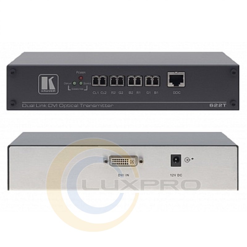 Kramer 622T перетворює електричний сигнал DVI в оптичний. Для зворотного перетворення використовується приймач 622R.
