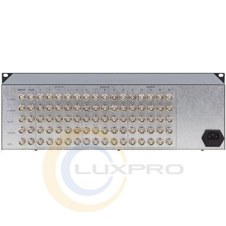 - виходи: 15 аналогових RGB - 0,7 В / 75 Ом, горизонтальний і вертикальний синхроімпульсів, рівень ТТЛ або аналоговий, роз'єми BNC;