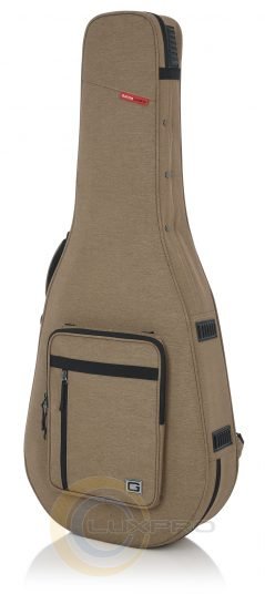 Легкий чохол в гібридному стилі серії Transit, призначений для 12-струнної акустичної гітари. Всередині - щільний пінополістирол (EPS) з бежевою плисовий підкладкою. Ручка з м'якою підкладкою для надійного і зручного захоплення. Внутрішній відсік для аксесуарів. Погодостійкістю зовнішні поверхні зі змішаною тканини коричневого кольору. Приховані ремені з підкладками в тон з верхньої ручкою. Велика передня кишеня на блискавці з додатковим невеликим кишенею спереду з м'якою підкладкою для швидкого доступу до телефону, ключів і дрібної електроніці. Внутрішні розміри: тисячу дев'яносто дві х 406 х 124 мм. Зовнішні розміри: одна тисяча сто тридцять п'ять х 464 х 220 мм.