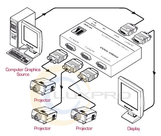 Ідеально підходить для презентаційних систем, де потрібно синхронізувати роботу локального монітора і двох проекторів. У комплект входить джерело живлення 12 В. VP400 відноситься до сімейства TOOLS - групі високоякісних і компактних приладів з оптимальним співвідношенням «ціна якість» і широким спектром застосування.