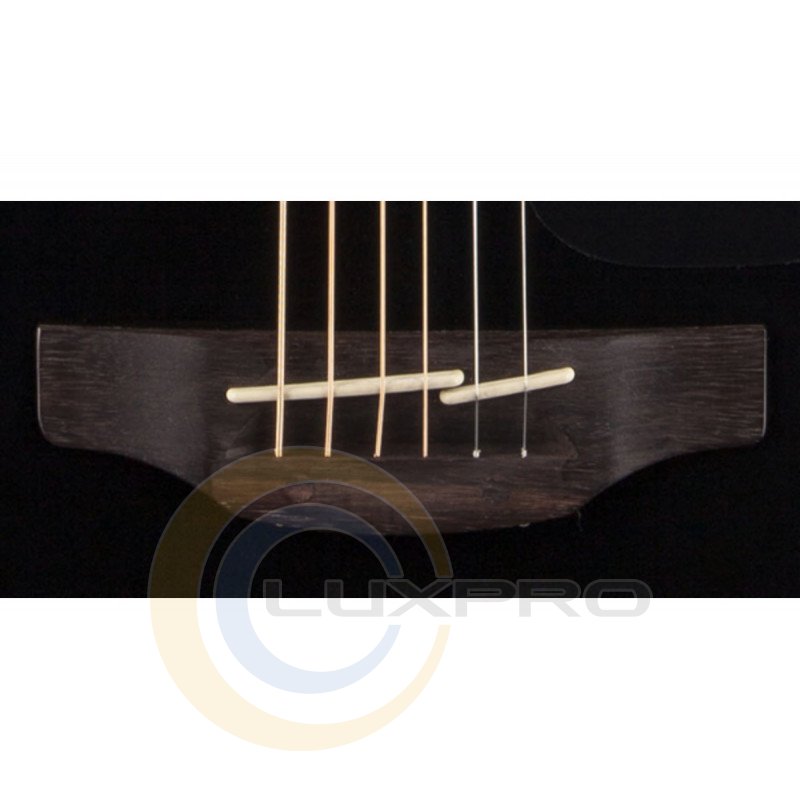 Інші приголомшливі особливості електроакустичної гітари TAKAMINE GD30CE BLK включають бридж з овангкола без кілочок, верхній і розщеплений нижній поріжки з синтетичної кістки, голову грифа з овангкола, розетку і інкрустацію у вигляді точок з перламутру, хромовані литі кілки і красиве глянсове покриття. Колір інструменту - натуральний.