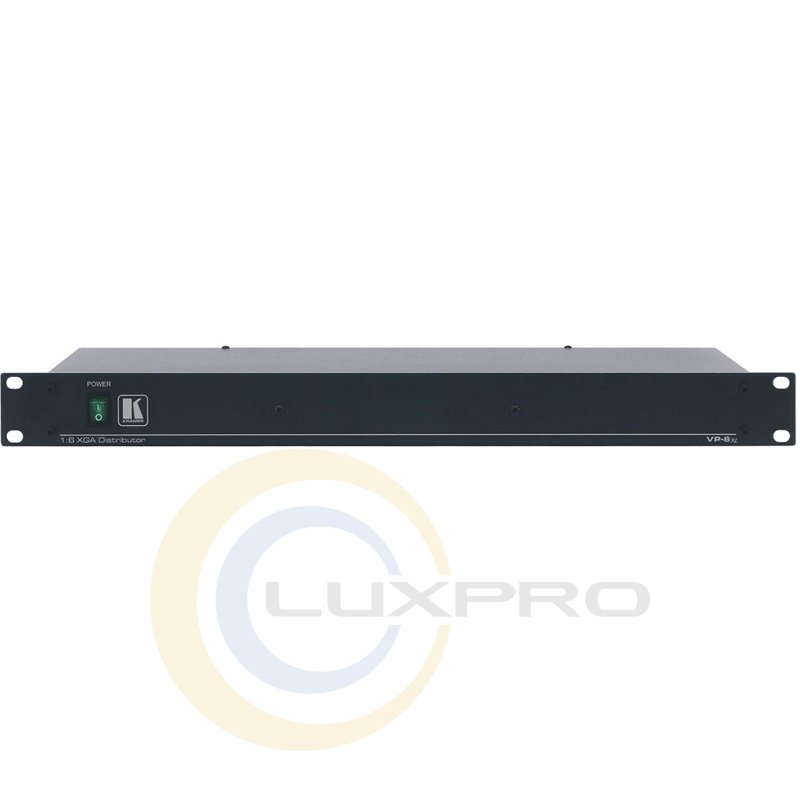 Розподіляє вхідні сигнали на шість ідентичних виходів. Може працювати з сигналами високого дозволу аж до UXGA. Вхід і виходи - відкритого типу. Прилад випускається в міцному корпусі і встановлюється в стандартну 19 "стійку, займаючи висоту 1U. У комбінації з іншими комутаторами VGA і розподільниками Kramer VP-6xl дозволяє створювати універсальні і надійні системи маршрутизації сигналів VGA.