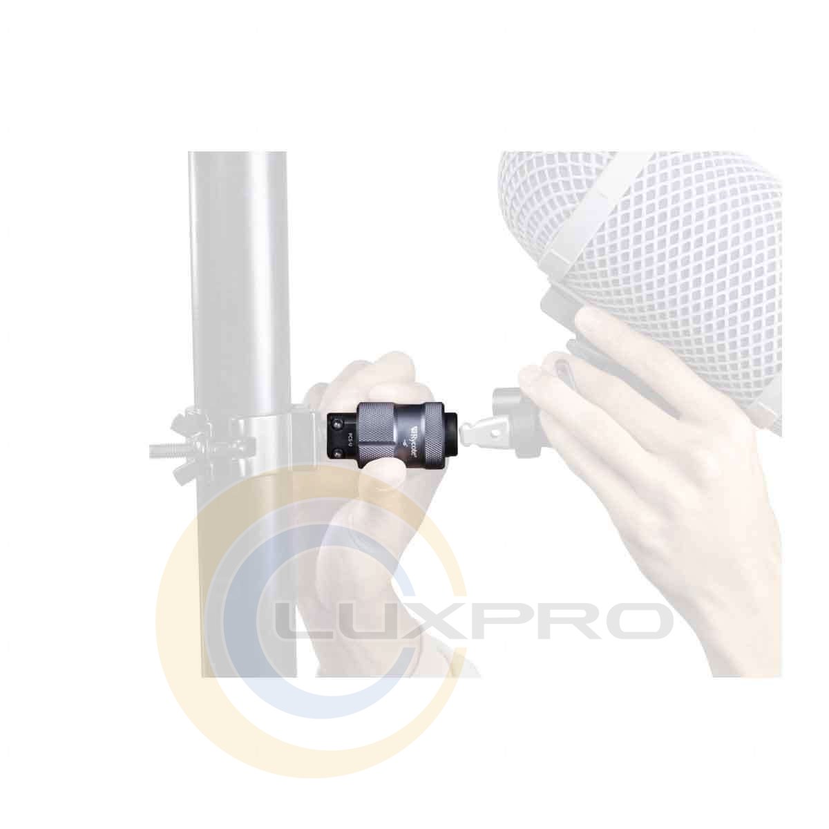 PCS-Utility - це кріплення для мікрофона. Вставте анодований алюмінієвий наконечник із зовнішнім різьбленням 3/8 "і" заклацніть »до клацання, щоб під'єднати будь-який аксесуар з різьбленням 3/8 дюйма для автоматичної фіксації, яка повністю безпечна і безшумна в роботі. Встановлена шайба Hytrel® збільшує натяг і забезпечує щільну посадку, зменшуючи ймовірність ослаблення.