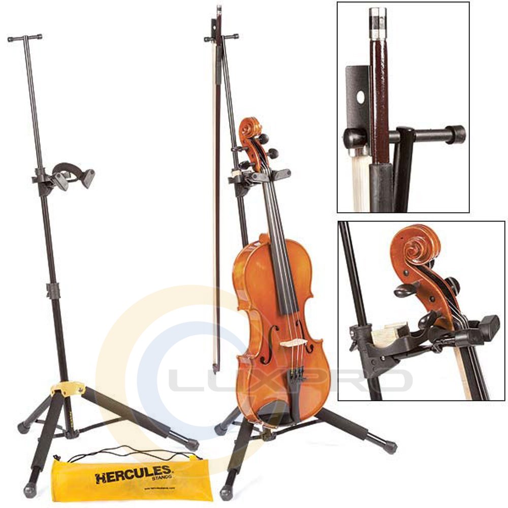 HERCULES DS571BB - ультракомпактна, легка, міцна та стійка конструкція з алюмінію. Влаштування автоматичного захоплення грифа. М'яке покриття із спеціального піноматеріалу на захопленні грифа та упорах для корпусу гітари. Гак та упор для зберігання смичка. Ультракомпактні розміри у складеному стані. Комплектується сумкою для транспортування.