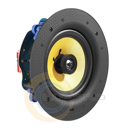 FLC-6TB оснащені 6,5-дюймовим низькочастотним динаміком і 1-дюймовою титановою пищалкой. Дифузор басовік виконаний з полімеру з хорошими антирезонансним характеристиками. Так як поліпропілен не боїться підвищеної вологості, а захисна сітка АС виконана з алюмінію, то таке поєднання значно розширює сферу даного динаміка в зволожених приміщеннях, ванних кімнатах або приміщеннях басейнів.Компактний безкаркасний корпус стельових динаміків FLC-6TB виготовлений з якісного полімеру ABS, додатково посиленого спеціальним наповнювачем для підвищення жорсткості і поліпшення антивібраційних властивостей. Захисна сітка колонки має магнітну фіксацію, що надає їй більш акуратний зовнішній вигляд і спрощує обслуговування. Стельові динаміки випускаються у виконанні чорного кольору і підходять для установки практично в будь-яких інтер'єрах.Характеристики: