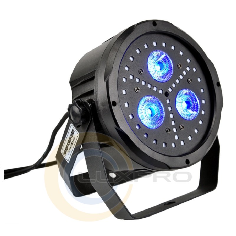 - джерело світла: 3 світлодіода 18 Вт RGBWA + UV 6in1;