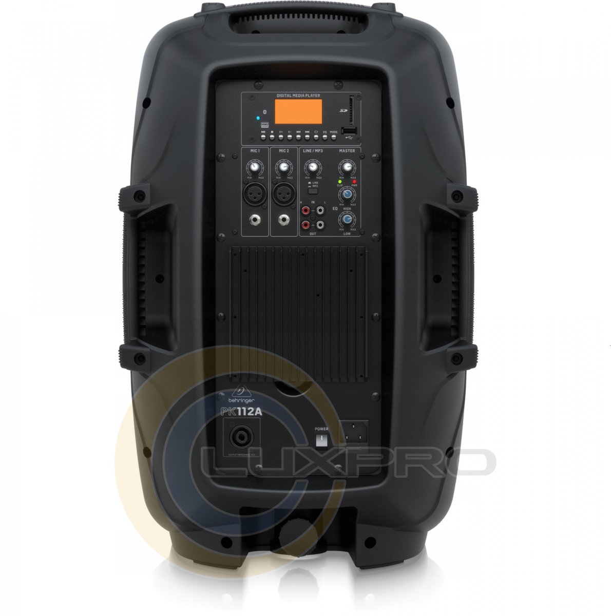 PK112A насправді являє собою автономну звукову систему з вбудованим підсилювачем потужністю 600 Вт і 2-канальним мікшером, USB / SD / MMC-плеєром і Bluetooth. Вихід Power Line дозволяє підключити другий пасивний динамік PK112.