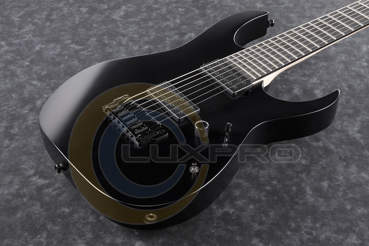 IBANEZ RGIXL7 BKF - електрогітара з лінійки RG IronLabel 2020 року. Це інструмент для справжнього металу, потужний, важкий, агресивний. Корпус гітари виконаний з ньятона. Гриф Nitro Wizard-7 XL - з трьох шматків, поєднання клена і терминалии (purpleheart). Особливість RGIXL7 - збільшена мензура 27 '' (686 міліметрів). На грифі 24 лади джамбо без інкрустації. На торці грифа - люмінесцентні маркери ладів, що абсолютно очевидно на темній сцені.