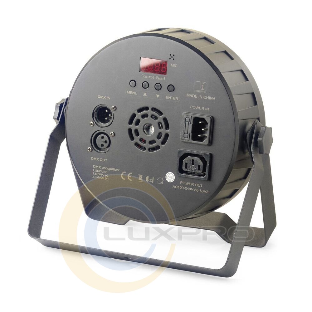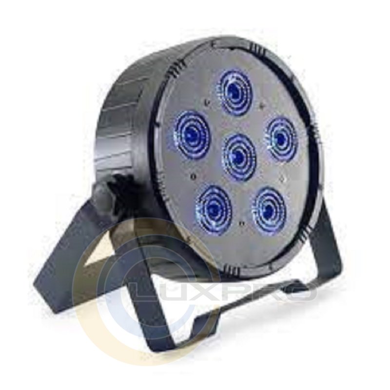 Прожектор SLI-ECOPAR6-2 Spotlight використовує 6 діодів по 12 Ватт потужності на 1200 люкс при 40 ° кута розкриття променя. Управління відбувається за протоколом DMX-512 або з пульта дистанційного керування. Цей світловий прилад може працювати в режимі диммера, стробирования і багато чого іншого.
