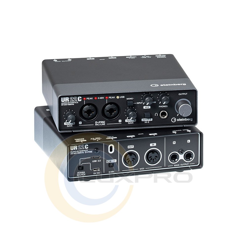 UR22C - аудіоінтерфейс. Провідні в галузі перетворювачі, що використовуються в серії UR-C, забезпечують виняткову якість звуку, завдяки максимальній частоті семплювання 192 кГц з 32-бітовим дозволом. Високоякісне перетворення є ключовим кроком до створення чудового аудіо продукту. Вклавши величезна кількість часу, зусиль і ретельних досліджень, дизайнери Steinberg прийшли до найкращої комбінації компонентів для видатного аналого-цифрового перетворення.