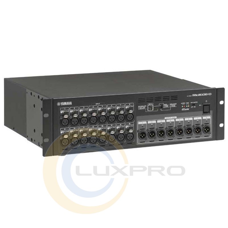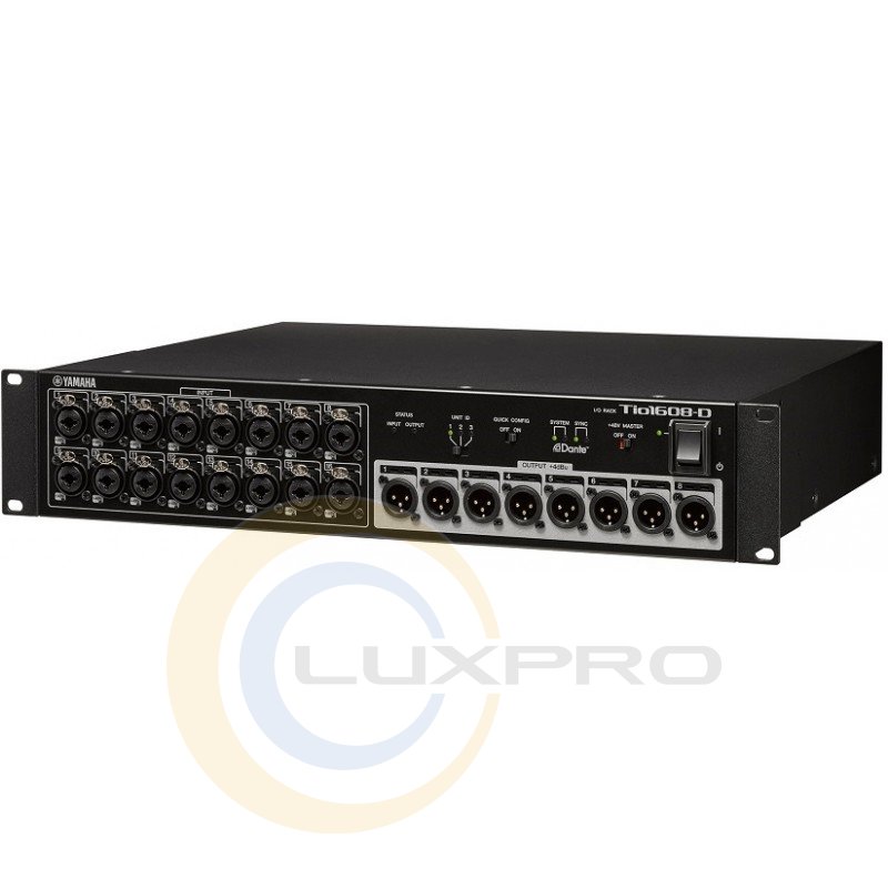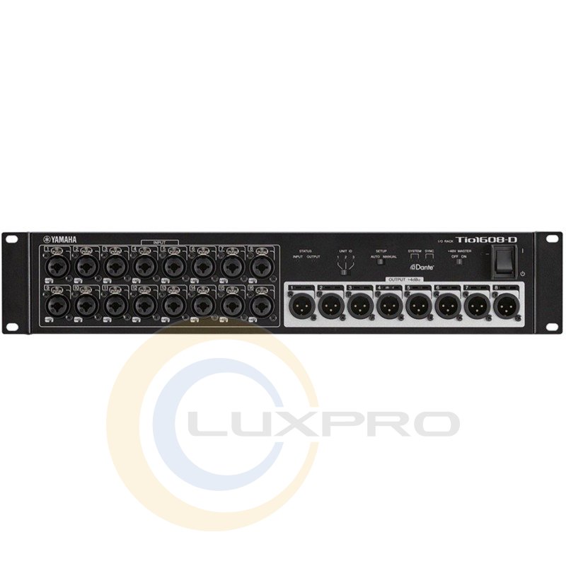YAMAHA Tio1608-D - рековий стейджбокс I / O оснащений 16 мікрофонними / лінійними входами і 8 лінійними виходами. Стейджбокс YAMAHA Tio1608-D обладнаний тими ж мікрофонними передпідсилювачами D-PRE що і мікшерні консолі серії TF для екстраординарного натурального і музичного звучання. Спільно з консолями TF можливе використання до 3 YAMAHA Tio1608-D.